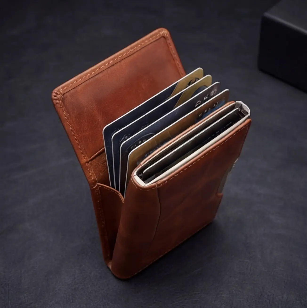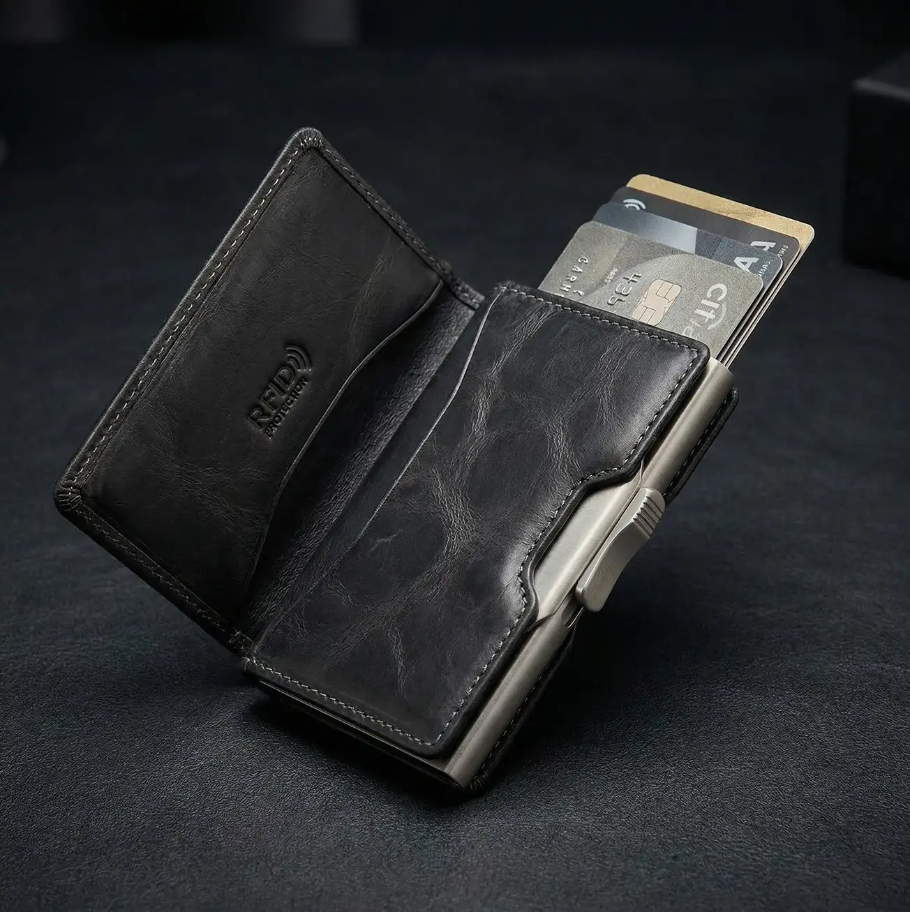Unser Flaggschiff-Portemonnaie vereint die angenehme Haptik von echtem Leder mit aktiver Signalblockierung und intelligenten Abrufsystemen. Es bietet die perfekte Balance zwischen Vintage-Charme und zuverlässigem Schutz vor modernen digitalen Betrugsbedrohungen.